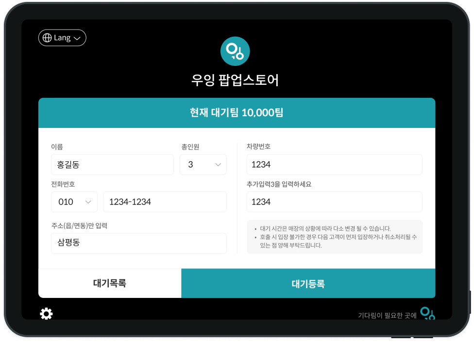 현재 대기 인원과 누적 방문자를 한눈에 확인